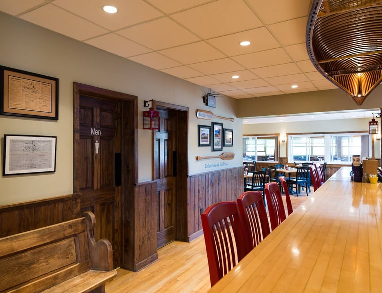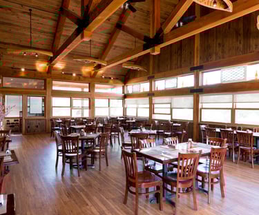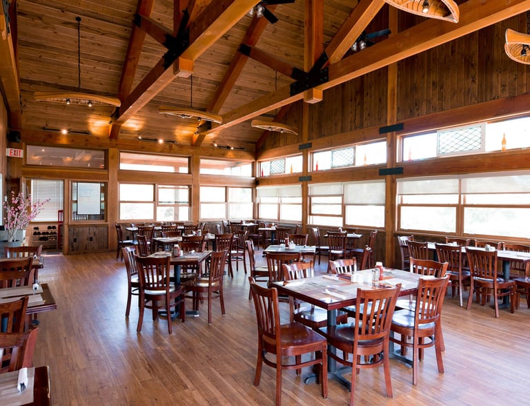 Step inside to a warm and inviting dining space, where rustic charm meets comfortable seating.