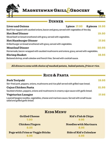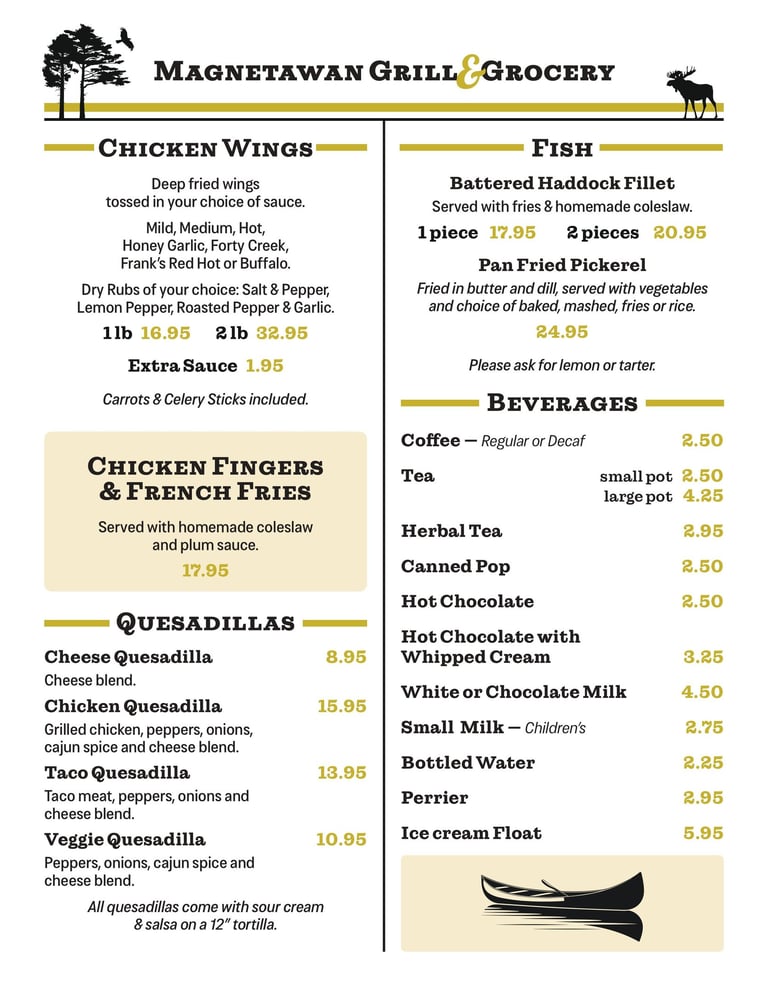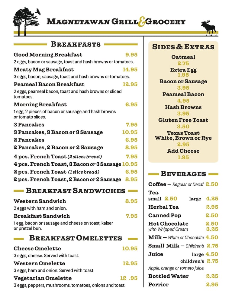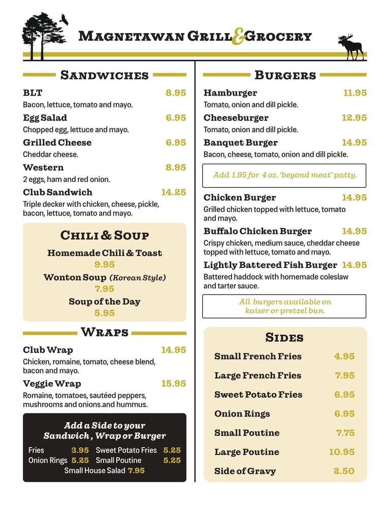 Let the Magnetawan Grill and Grocery be the catalyst that ignites the new beginning for the village of Magnetawan - a vibrant village surrounded by tranquility and serenity.